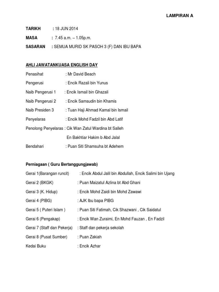 Ahli Jawatankuasa English Day Pdf
