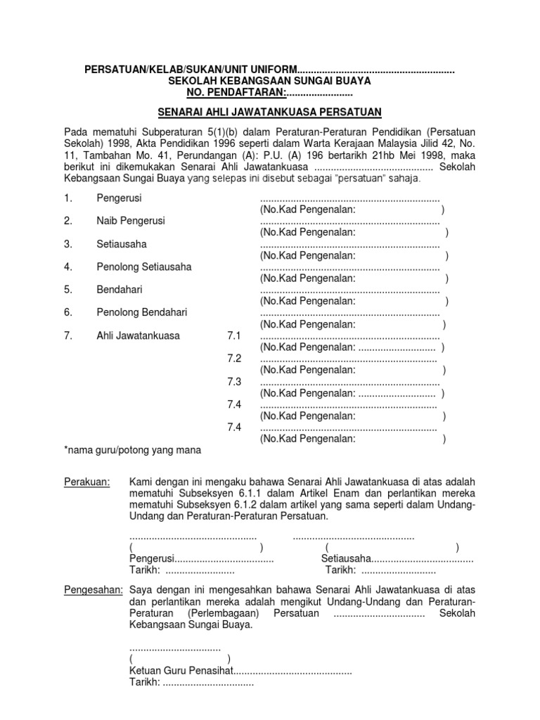 Senarai Ahli Jawatankuasa Persatuan Pdf